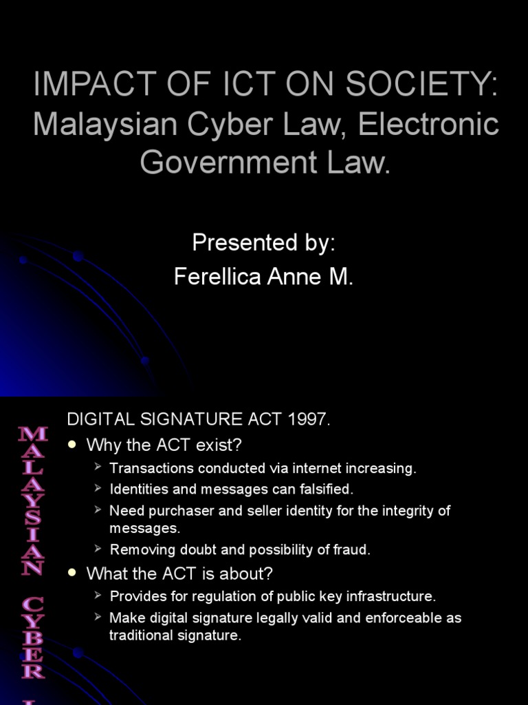 Since then, there have been various amendments to current legislation to adapt to internet situations, and new cyberlaws have been passed. Communication and multimedia act 1998 malaysian communication and multimedia commission act 1998 digital signature act 1997 copyright act (amendment) 1997 telemedicine act 1997 optical disc act 2000 electronic transaction act 2006. Bring together an integrated environment with all the unique elements and attributes necessary to create the perfect multimedia climate. By nurul sulaiman 22029 views. Public servant framing an incorrect record or writing with intent to save person from punishment, or property from forfeiture.