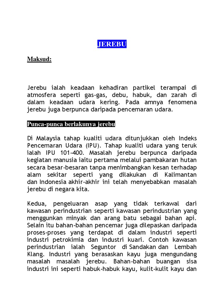 Jerebu Dan Kesannya from imgv2-1-f.scribdassets.com Jerebu adalah peringatan allah kerana kemurkaannya terhadap perbuatan manusia yang selain itu sebagai tanda kiamat semakin hampir. Langkah mencegah dan kesan jerebu terhadap kesihatan mp3 & mp4. Fenomena jerebu yang sekali lagi melanda beberapa bahagian negara ini, pasti akan menjejaskan tahap kesihatan orang ramai. Memang tidak dinafikan juga, fenomena jerebu mendatangkan kesan negatif terutama terhadap tahap kesihatan rakyat di negara. Apakah kesan jangka masa pendek jerebu ke atas kesihatan saya? Fenomena jerebu yang sekali lagi melanda beberapa bahagian negara ini, pasti akan menjejaskan tahap kesihatan orang ramai. Kesan buruk jerebu kepada kesihatan. Geo tingkatan 1 kesan kegiatan manusia terhadap iklim dan cuaca.