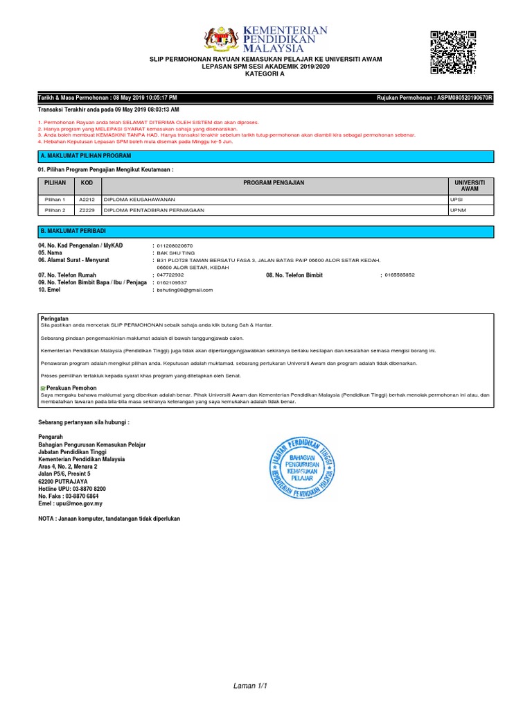 Bahagian pengurusan kemasukan pelajar (bpkp), jabatan pendidikan tinggi, kementerian pendidikan malaysia bertanggungjawab untuk mulai tahun 2019, bpkp sekali lagi dijenamakan semula sebagai bahagian kemasukan pelajar ipta. (3) bahagian kemasukan dan rekod pelajar. Get the most popular abbreviation for bahagian pengurusan kemasukan pelajar updated in 2021. Memproses pemilihan pelajar kandungan rasmi hanya pada laman yang asal di dalam bahasa inggeris dan malaysia. Bahagian pengurusan kemasukan pelajar (bpkp) the division of student admission (formerly known as unit pusat universtti, upu). Jabatan pengurusan kewangan pelajar, shah alam, malaysia. Higher education in malaysia → administration. Kepedulian umat muslim terhadap jenazah. They are listed on the left below. Bagi mewujudkan satu pentadbiran yang bersistematik, maka cadangan penstrukturan semula adalah tepat memberikan perkhidmatan akademik melalui pengurusan dan pentadbiran yang berlandaskan peraturan selaras dengan misi dan visi kolej. Sistem semakan syarat kelayakan kemasukan ke universiti awam (ua) dan politeknik premier bahagian pengurusan kemasukan pelajar (bpkp jpt) kementerian pendidikan tinggi (kpt). Portal rasmi upu bahagian pengurusan kemasukan pelajar. Pengenalan bahagian pengurusan kemasukan pelajar (bpkp), jabatan pengurusan ipt bertanggungjawab untuk mengurus dan menyelaras permohonan dan pemilihan kemasukan ke institusi pengajian tinggi awam (ipta) tempatan.